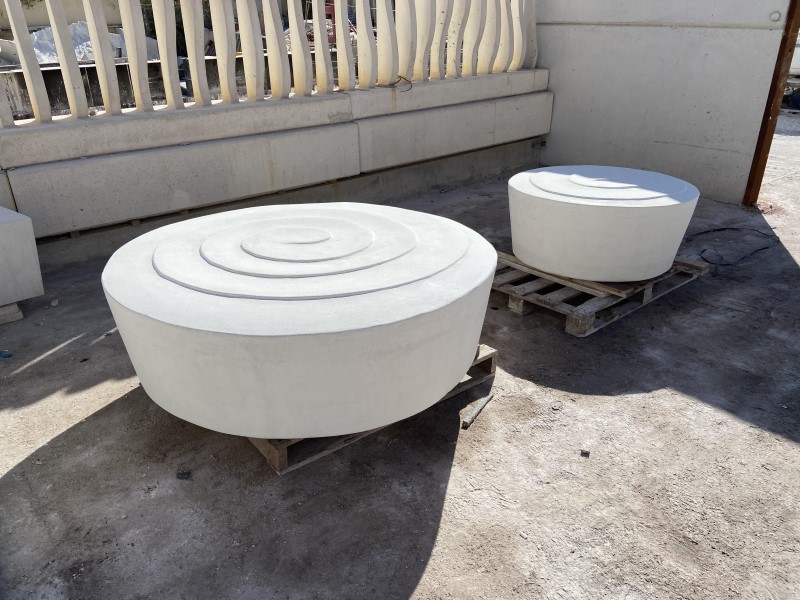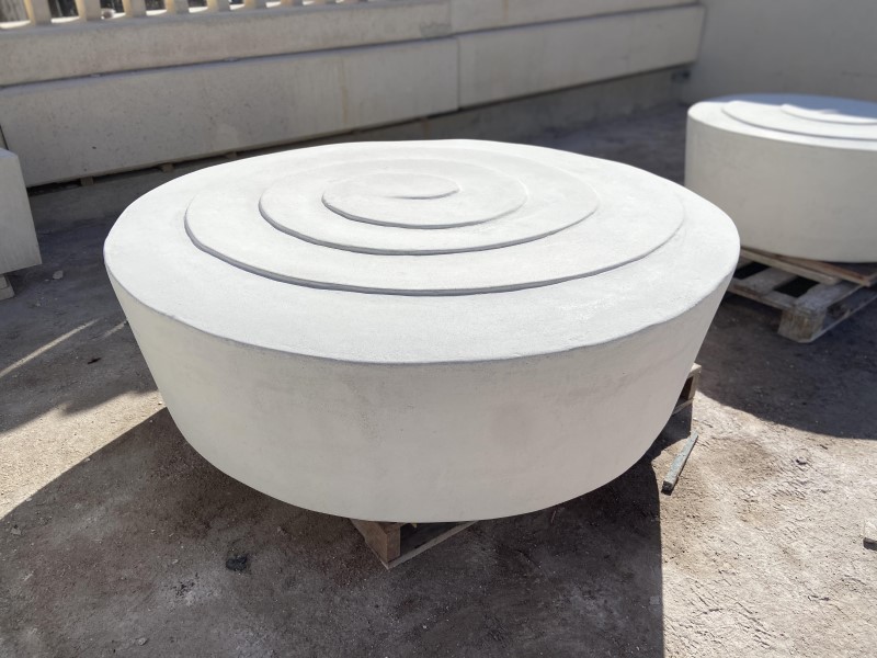 Precioso banco circular de diámetro 150 y altura 0,45 cm. En su base reduce su diámetro a 140.