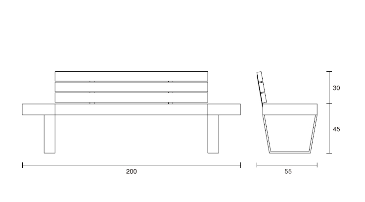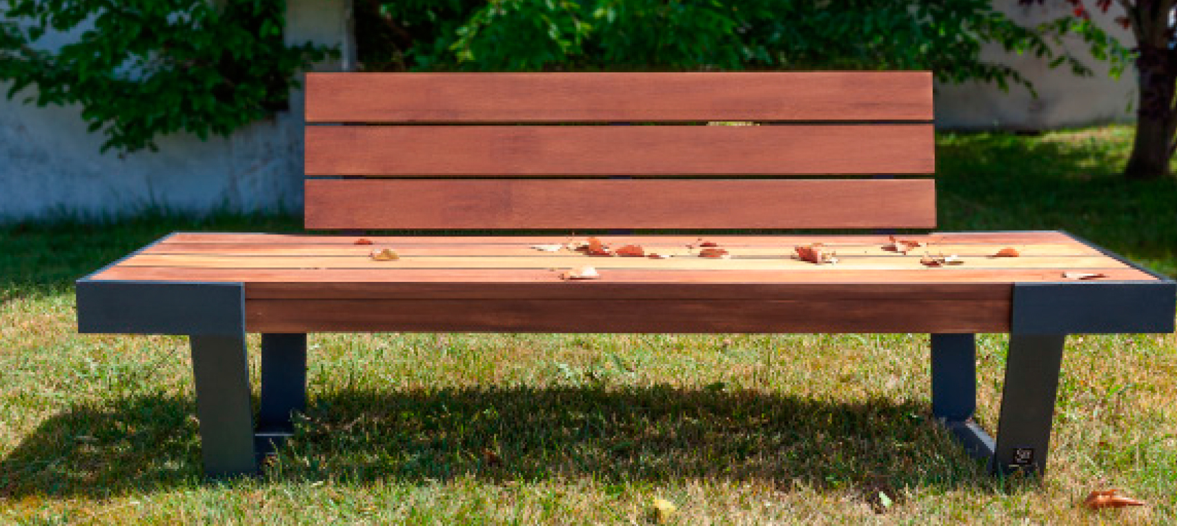 Banco compuesto por listones de madera apoyados en estructura metálica que se asienta sobre el suelo. Se trata de un banco muy indicado para espacios públicos o privados, con estructura ligera y muy confortable. Esta pieza de mobiliario urbano tiene un peso de 76 Kg.